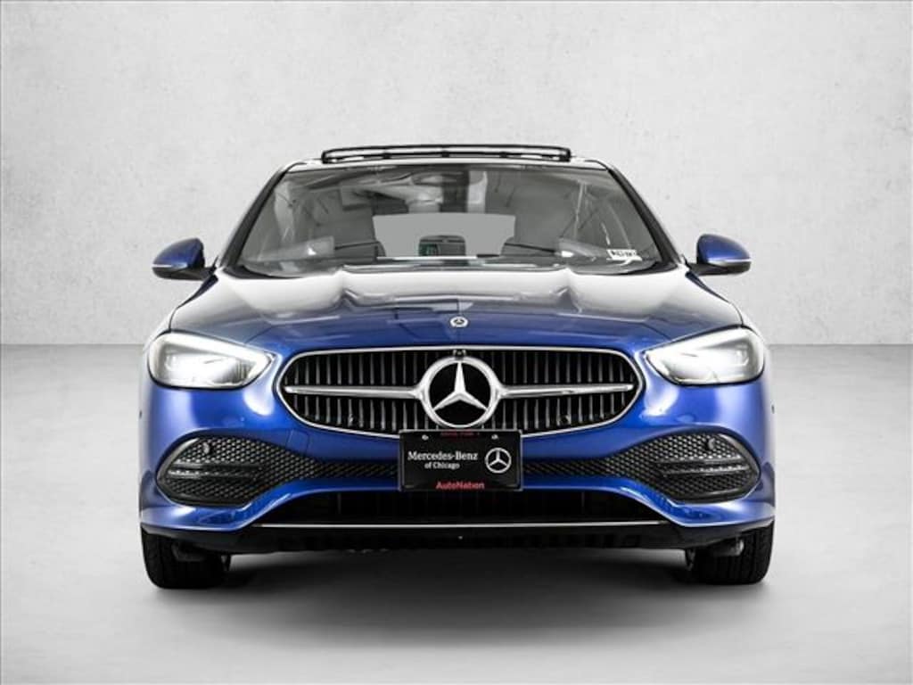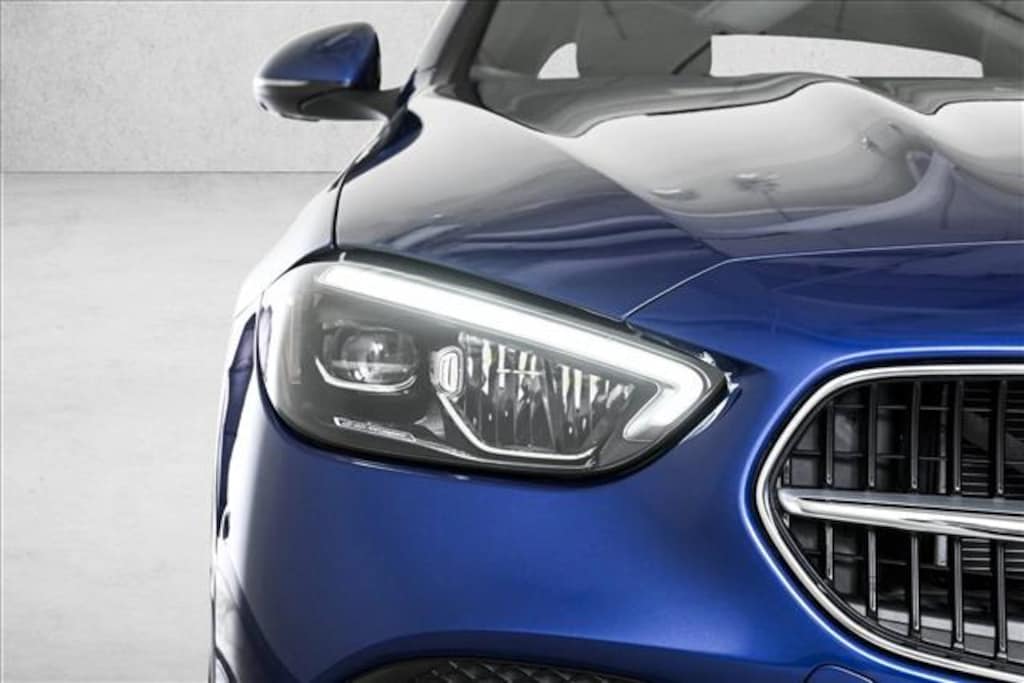 Certified 2025 2025 Mercedes Benz C300W4 All-wheel drive X Loaner Starling Blue Metallic/Black MB-Tex with Exclusive Line, Panorama Sunroof, Heated Steering Wheel, Winter Package, Fineline Anthracite Wood, Rear Spoiler/Body Color, 18 Multispoke Wheels